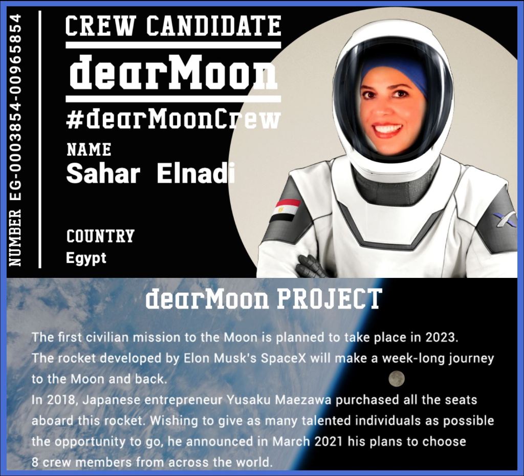 تحقيقا لحلم حياتها منذ طفولتها، سحر النادي تقدم في أول رحلة فضاء للمدنيين في تاريخ البشرية للدوران حول القمر لمدة أسبوع