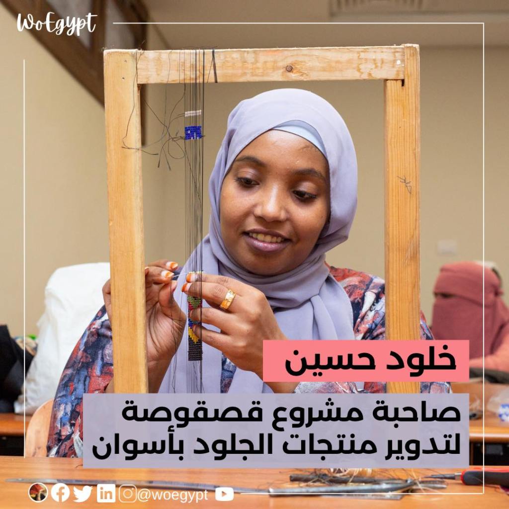 بألوان ملابسها المميزة وابتسامتها المشرقة بدأت خلود حسين – 28 عاما – الحديث عن رحلتها من ربة منزل ترعى طفليها في قرية الكوبانية غرب النيل بأسوان، إلى صاحبة مشروع ناشئ. ” أنا أصلا من أسوان، لما اتجوزت انتقلت للقرية، كنت بشتغل في شركة سياحة وبعدين بطلت وقعدت في البيت علشان أربي الولاد. كنت بنظم دروس في القرية لكن توقفت بعد فترة بسبب الانتقادات للدخول والخروج لأن تقاليد القرية مش بتسمح بكده، فدورت على شغل أكسب منه وفي نفس الوقت أكون في البيت”.