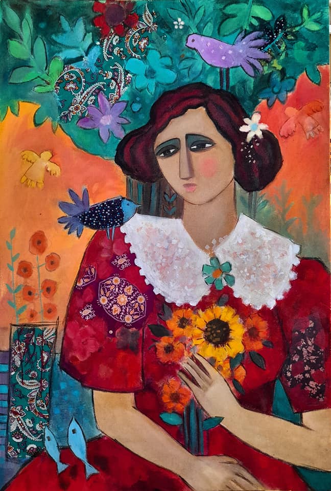 س م: استخدامك للألوان الزاهية للغاية يصور مزاج متفائل. ما سر استخدام هذه الألوان الزاهية في جميع لوحاتك؟