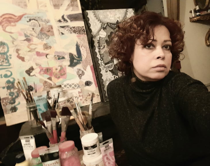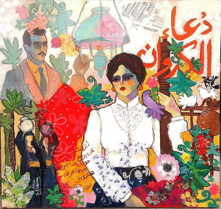 س م: الكثير من لوحاتك عبارة عن إعادة إنتاج لأفلام مصرية قديمة. هل يمكن أن تخبرينا لماذا اخترت موضوع العمل هذا للتركيز عليه؟
