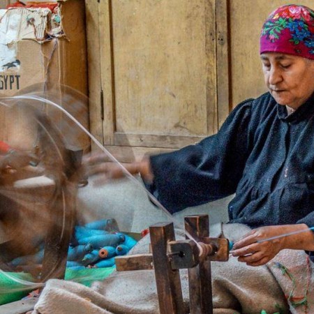 أنامل الحاجة رضا الذهبية تحول الصوف الي قطع فنية